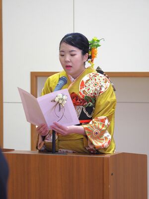 新成人を代表し、福田さん(れもんワークス)が挨拶をしてくれました。